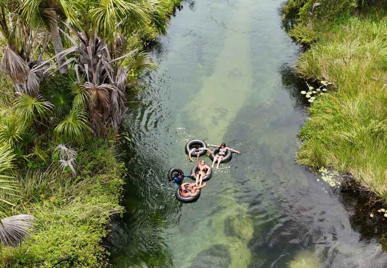 Temos um trajeto nas regiões opostas dos lençóis até os rios da Cardosa para descer de boia cross descansando e relaxando.